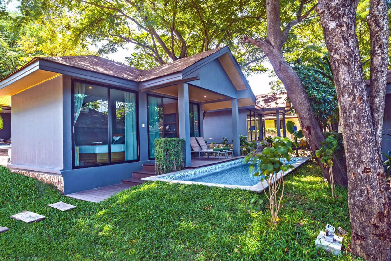 В вилле, расположенной в саду, гостям предлагается спальня с кроватью размера queen-size, санузел с душем и ванной, меблированная терраса с собственным бассейном. В числе удобств – телевизор, кондиционер, сейф, холодильник, чайно-кофейные принадлежности, телефон, фен, набор гостиничной косметики.