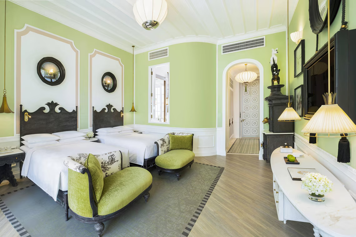 Комплектация номера включает двуспальную кровать king-size/2 односпальные кровати, кондиционер, телевизор, телефон, мини-бар, сейф. В числе прочих удобств Wi-Fi, набор для приготовления чая и кофе, гладильные принадлежности, фен. Ванная комната с душем и ванной.