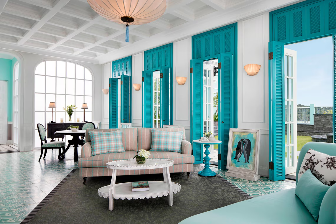 В люксе есть спальня, гостиная с диваном, 2 ванные комнаты с душем и ванной, балкон с видом на океан. В удобства включены Wi-Fi, кондиционер, телевизор, телефон, мини-бар, сейф, фен, туалетно-косметические принадлежности, утюг, гладильная доска. Гости размещаются на двуспальной кровати king-size.